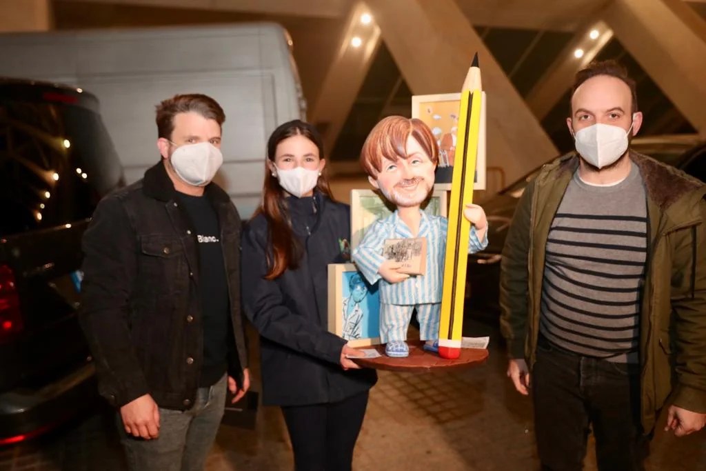 Los artistas falleros Ceballos y Sanabria, juntamente a la Fallera Mayor Infantil de València, Nerea López Maestre, han llevado el ninot de la falla municipal infantil 2022, “També?”, a la Exposición del Ninot.