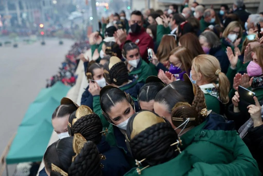 27/02/2022. J. Meneses. De buena mañana, las Falleras Mayores de València 2022, acompañadas de sus Cortes de Honor realizaban la tradicional bendición de “Els Trons de Bac” a Santa Bárbara en la Iglesia de San Juan del Hospital. Para seguidamente iniciar la “Despertà” infantil y acontinuación la de los mayores que arrancanba desde el Parterre y recorrá la calle de la Paz y San Vicente finalizando en la plaza del Ayuntamiento con una apoteosis a cargo de Pirotecnia Valenciana.
