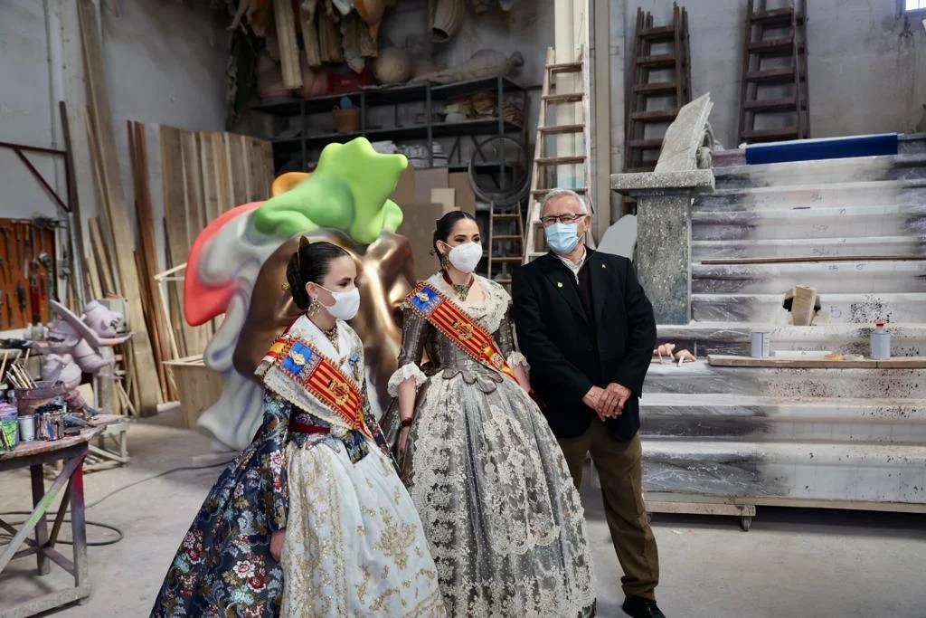 “La incidencia de la epidemia está bajando de una manera importante, pero hemos de recordar que la enfermedad puede volver a crecer porque el virus sigue estando entre nosotros –ha continuado el alcalde- y por eso pido a la gente que disfrute de las calles, que normalice las Fallas, pero que sean responsables consigo mismos y con el resto de las personas”. Durante el recorrido por la Ciudad Fallera, el alcalde Ribó, el concejal Galiana y las Falleras Mayores, Carmen Martín Carbonell y Nerea López Mestre, han visitado los talleres de Manolo Algarra (autor, entre otros monumentos, de los de las comisiones Almirante Cadars y Maestro Gozalbo) y el de los Hermanos Devis.