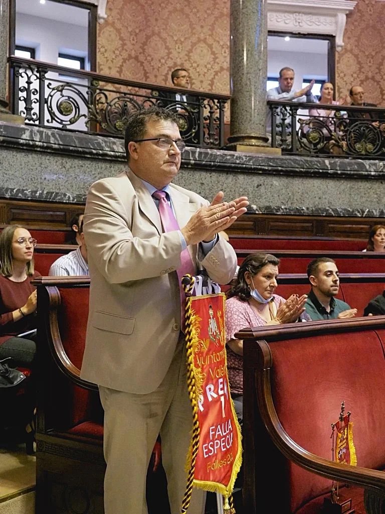 El Hemiciclo municipal ha vuelto a acoger de nuevo el acto, que se ha dividido en dos partes –artistas de fallas infantiles y grandes— y que ha estado presidido por las Falleras Mayores de València, Nerea López Maestre y Carmen Martín Carbonell, el concejal de Cultura Festiva y presidente de Junta Central Fallera, Carlos Galiana, y el Mestre Major del Gremio de Artistas Falleros de València, Paco Pellicer.