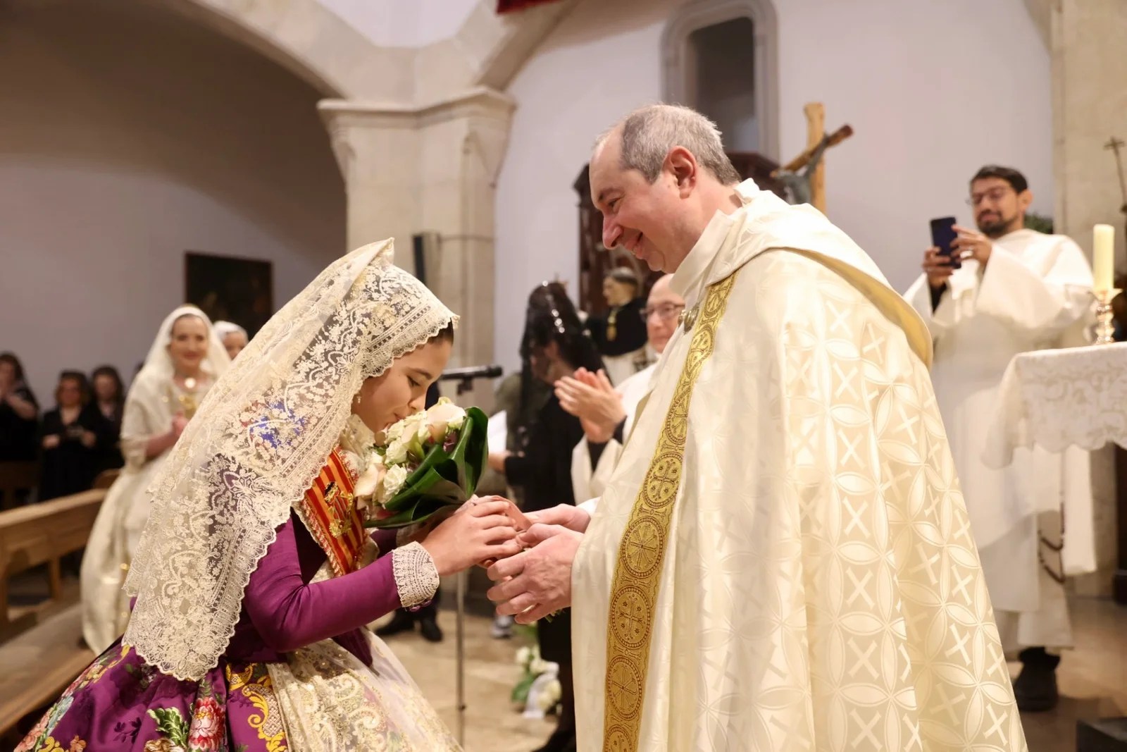 El regidor de Cultura Festiva de l’Ajuntament de València i president de Junta Central Fallera, Pere Fuset, i les Falleres Majors de València, Paula Nieto i Laura Mengó, han participat este dilluns festiu en la ciutat en l’ofrena de flors en honor a Sant Vicent Ferrer, patró de la Comunitat Valenciana.